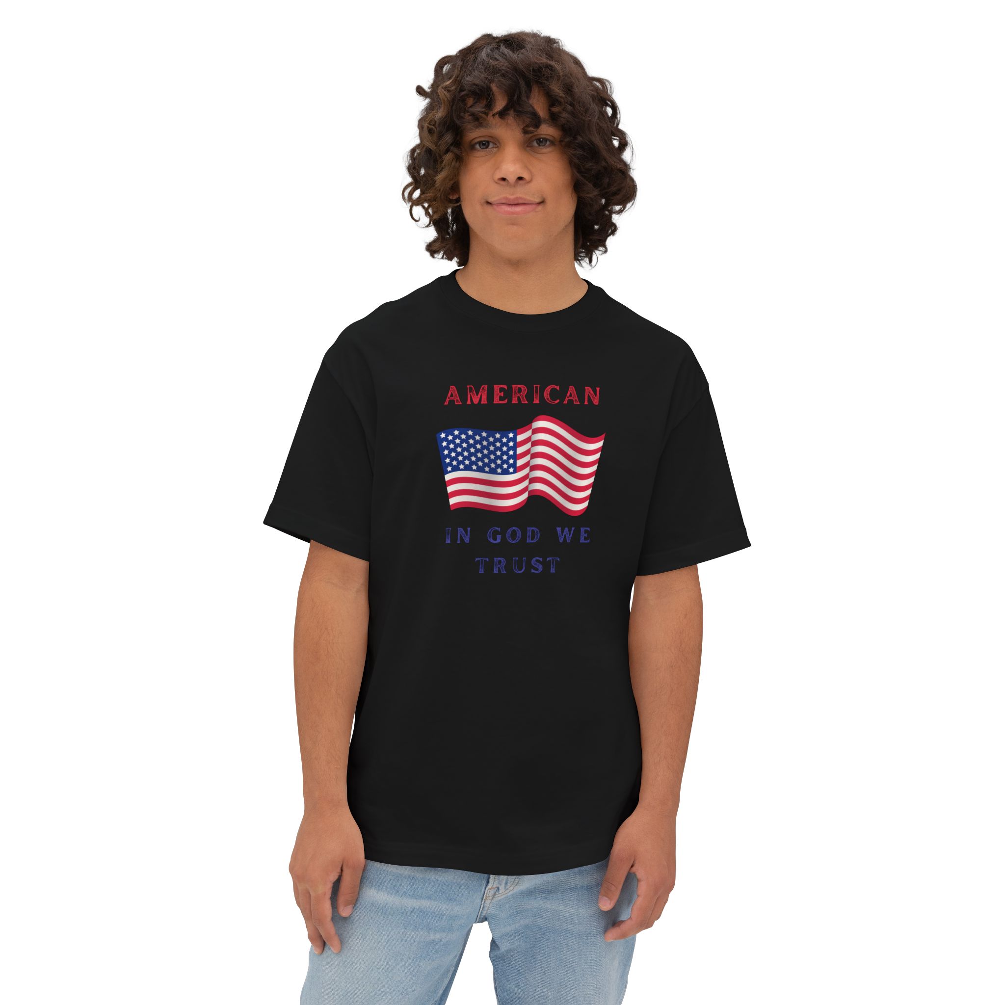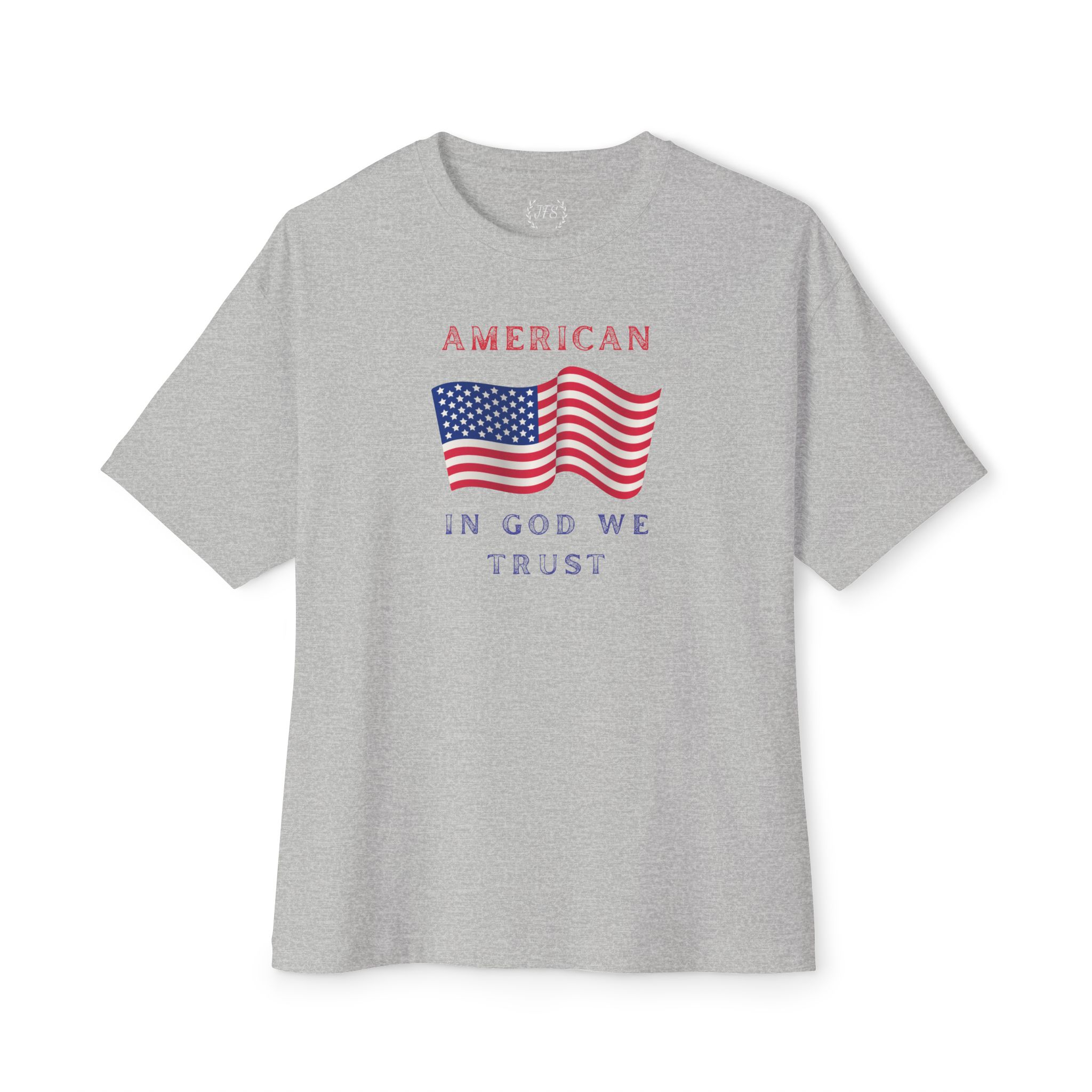 Light, easy, and quietly proud — this oversized boxy tee lets a gentle wave of vintage Americana do the talking. The soft white cotton lays flat and breezy, the flag print washed in muted reds and blues so it reads like a well-worn poster. Wear it on slow summer mornings, at neighborhood parades, or layered under an open shirt for backyard barbecues. The relaxed drop-shoulders and roomy cut give it a casual, lived-in silhouette that moves with you, not against you. It’s for people who like their patriotism low-key and their comfort high — the kind of shirt you reach for when you want to feel grounded and easy.