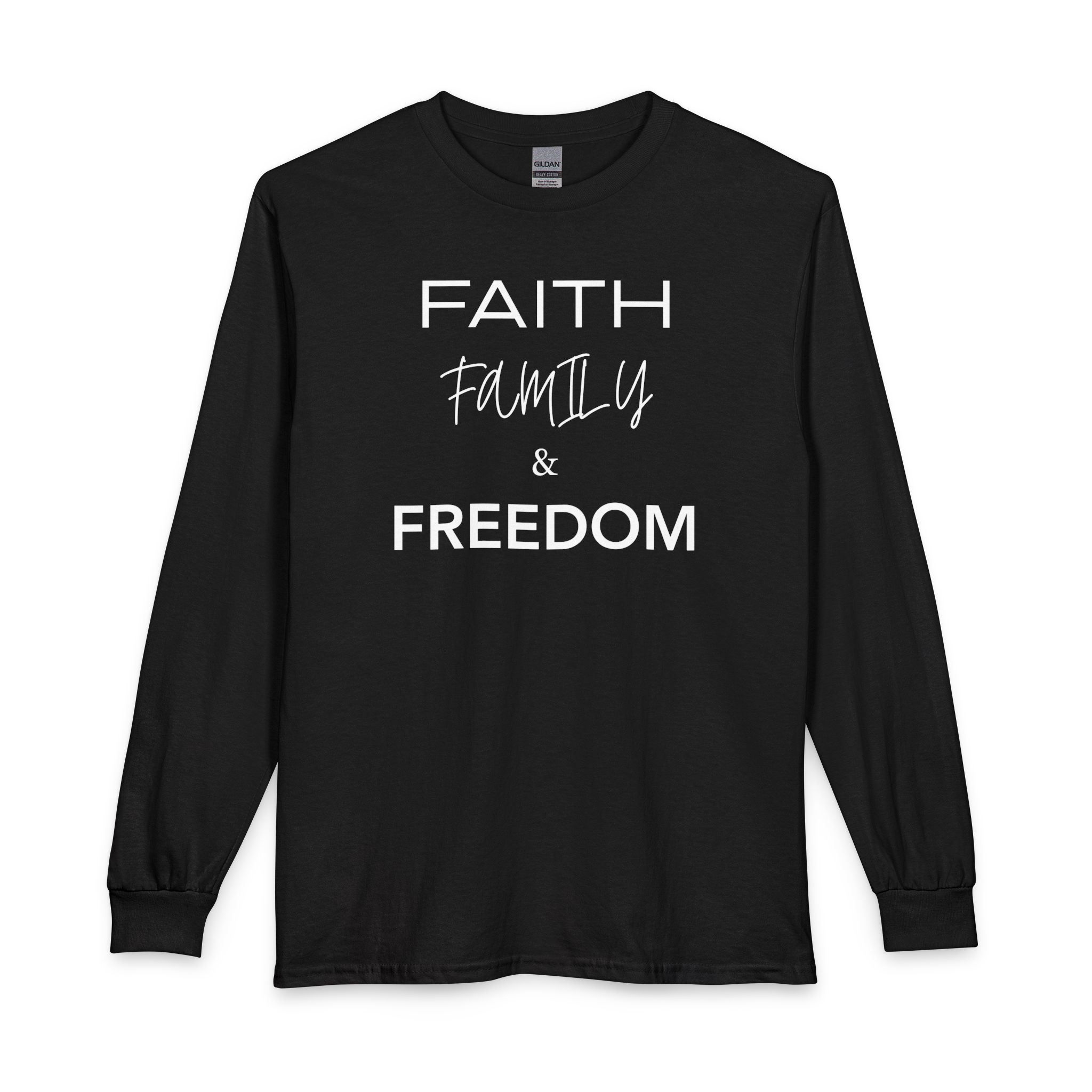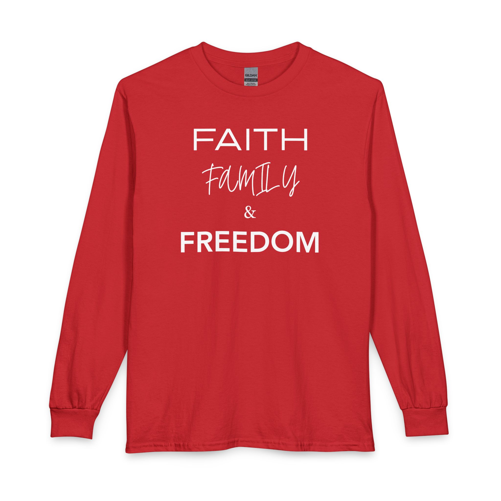 Introducing our Unisex Long Sleeve T-Shirt, a perfect blend of comfort and style. This versatile tee is ideal for any casual outing or cozy evening at home. Feel the softness of 100% cotton against your skin while making a bold statement with its inspiring design. It’s perfect for anyone who cherishes values like faith, family, and freedom, making it a thoughtful gift for loved ones. Whether it’s a family gathering, holiday celebration, or a casual day out, this T-shirt elevates your wardrobe with a relaxed vibe. Suitable for all occasions, it’s a must-have for those who embrace a lifestyle of positivity.